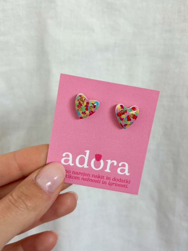 Igrivi pisani uhani Confetti. Idealni so za posebne priložnosti ali za vsakodnevno nošenje, kadar želite svojemu videzu dodati pridih veselja in mladostnosti.