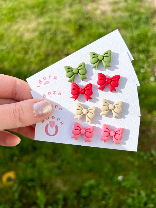 Ročno izdelani neviseči uhančki v obliki ljubkih majhnih mašnjic oz. pentljic. Ti prikupni pisani dodatki so kot nalašč za dopolnitev outfita ali kot čudovito darilce za vaše najdražje. Njihova nežna eleganca bo zagotovo pritegnila pozornost in dodala prisrčno noto vašemu stilu. Primerni za otroška ušeska in za odrasle.