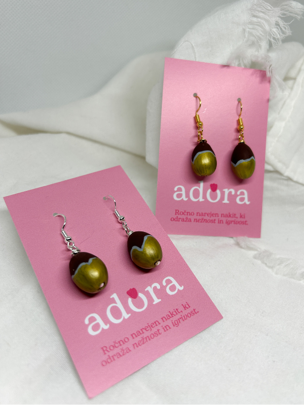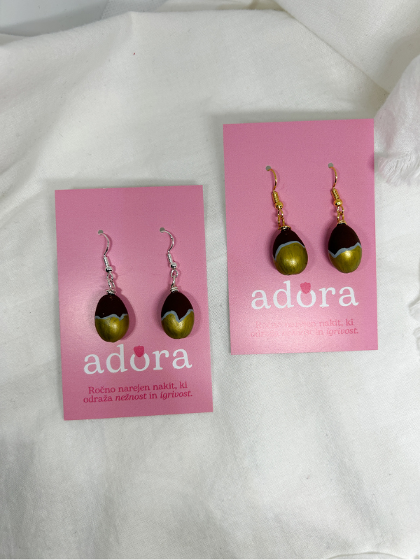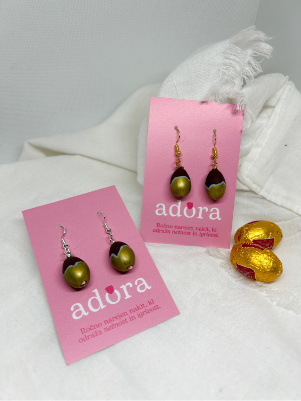 Odkrijte čar ročno izdelanih uhanov v obliki čokoladnih jajčk. Popoln dodatek za popestritev outfita ob praznovanju velike noči ali kot čudovito velikonočno darilce.