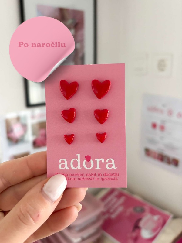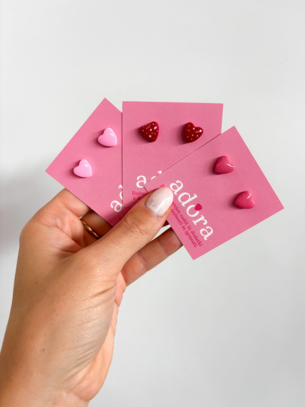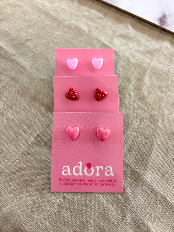Ročno izdelani uhani Heart v obliki srčkov, ki prinašajo igrivost in toplino v vsakdanji videz, na voljo v različnih ljubkih barvnih odtenkih.