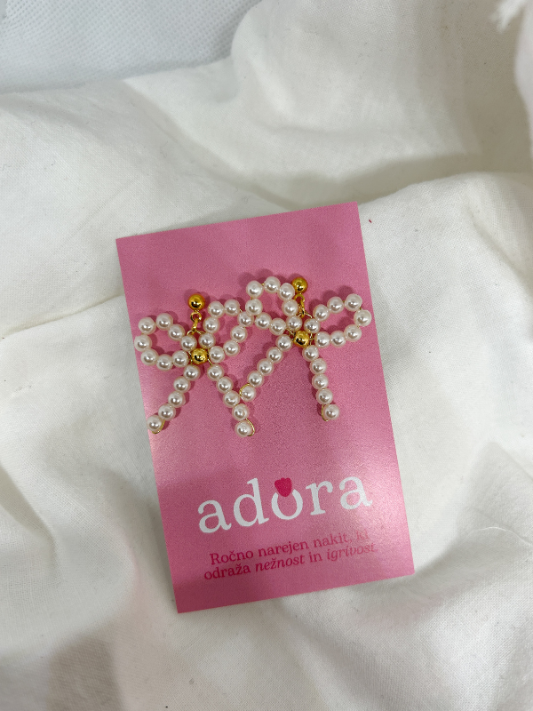 Viseči ljubki uhani v obliki mašnjic, izdelani iz perlic. Idealni so za tiste, ki si želijo izraziti nežnost in ženstvenost. Možna izbira barve perlic (glej sliko). Cena je na en par.