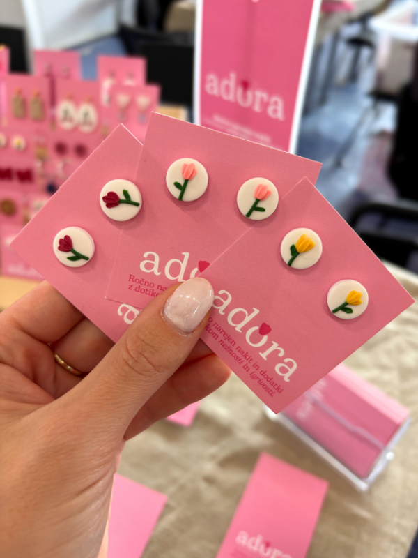 Uhani Petal s čudovitimi ročno izdelanimi tulipani prinašajo svežino in eleganco vsakemu videzu – popoln unikatni kos nakita iz polimerne mase.