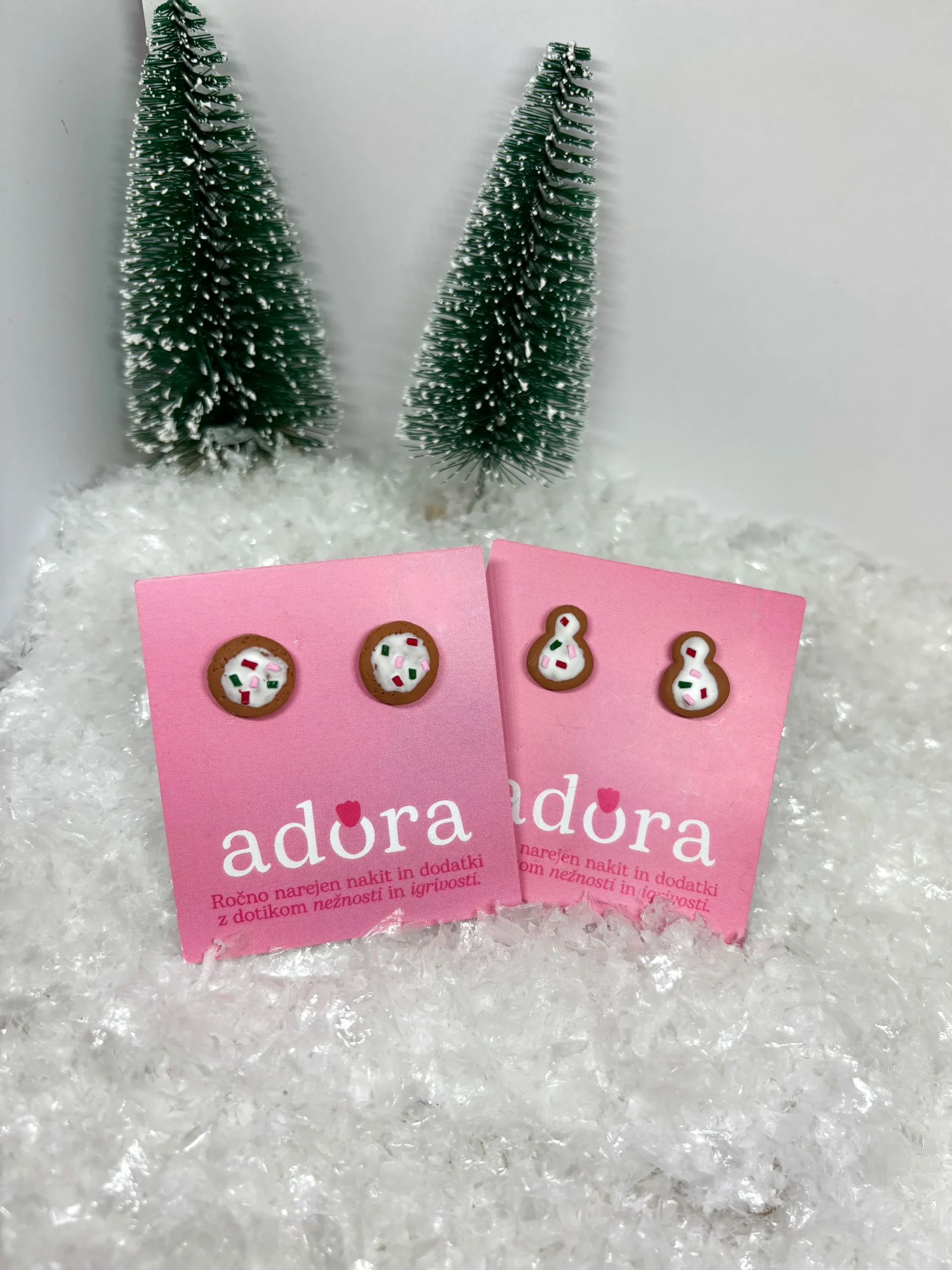 Ročno izdelani praznični uhančki v obliki piškotkov in snežakov za igriv praznični videz. Na voljo tudi za nepreluknjana ušesa (klip).