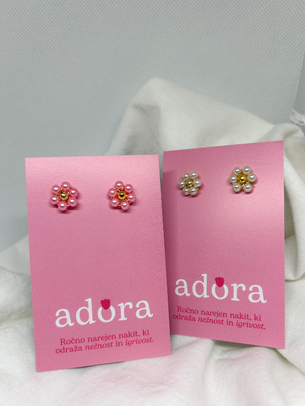 Ljubki majhni uhani v obliki rožic, izdelani iz perlic. Idealni so za tiste, ki si želijo izraziti nežnost in ženstvenost. Možna izbira barve perlic (glej sliko). Cena je na en par.