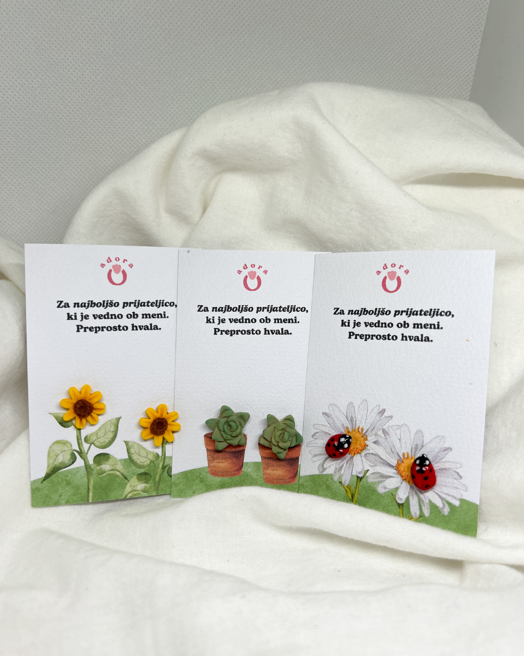 Trije unikatni dizajni s posvetili. Izbrala sem jih s posebno mislijo na vaju, na smeh, ki sta ga delili, solze, ki sta jih obrisali, in na vse pustolovščine, ki še prihajajo. Ne pozabi – najlepša darila prihajajo iz srca.